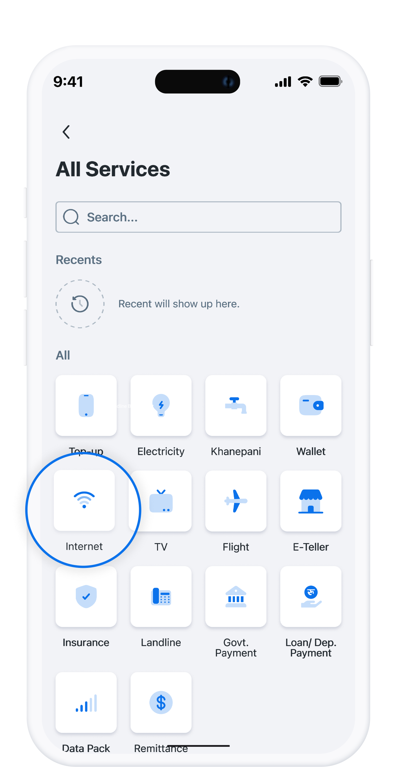 Select “Internet” from Popular Service and select service provider