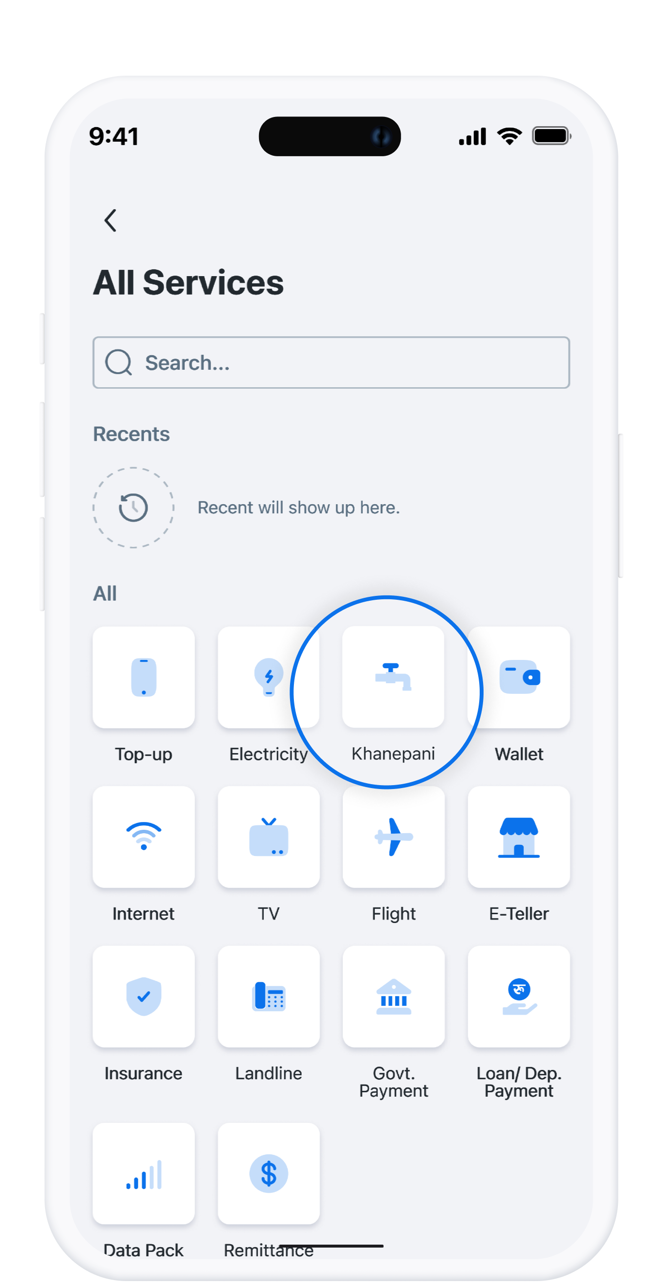 Select “Khanepani” from Popular Service