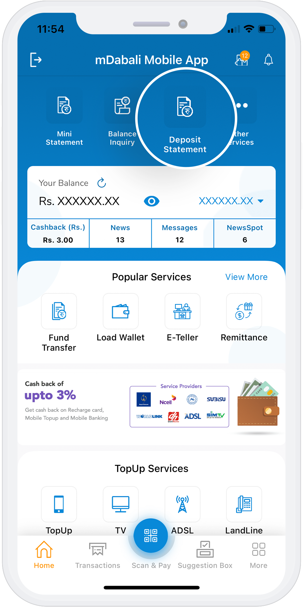 With the mDabali mobile banking platform, customers of Cooperatives and Microfinance can view their deposit activities. The deposit statement contains bank account information, such as account numbers and a detailed list of deposits. Users can select the time frame for which they want to view their deposit activity.