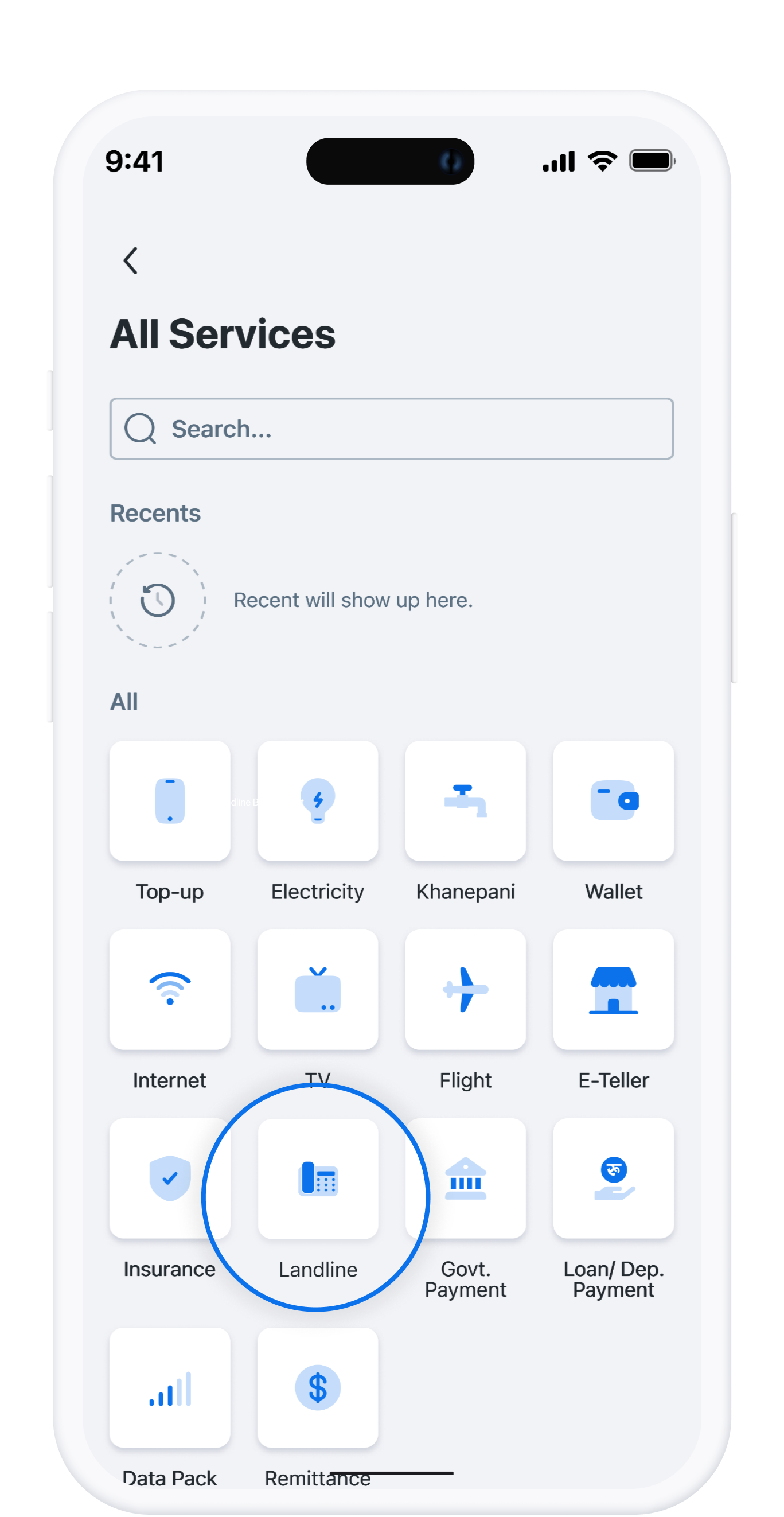 Select the “Landline” option available from the Popular Service